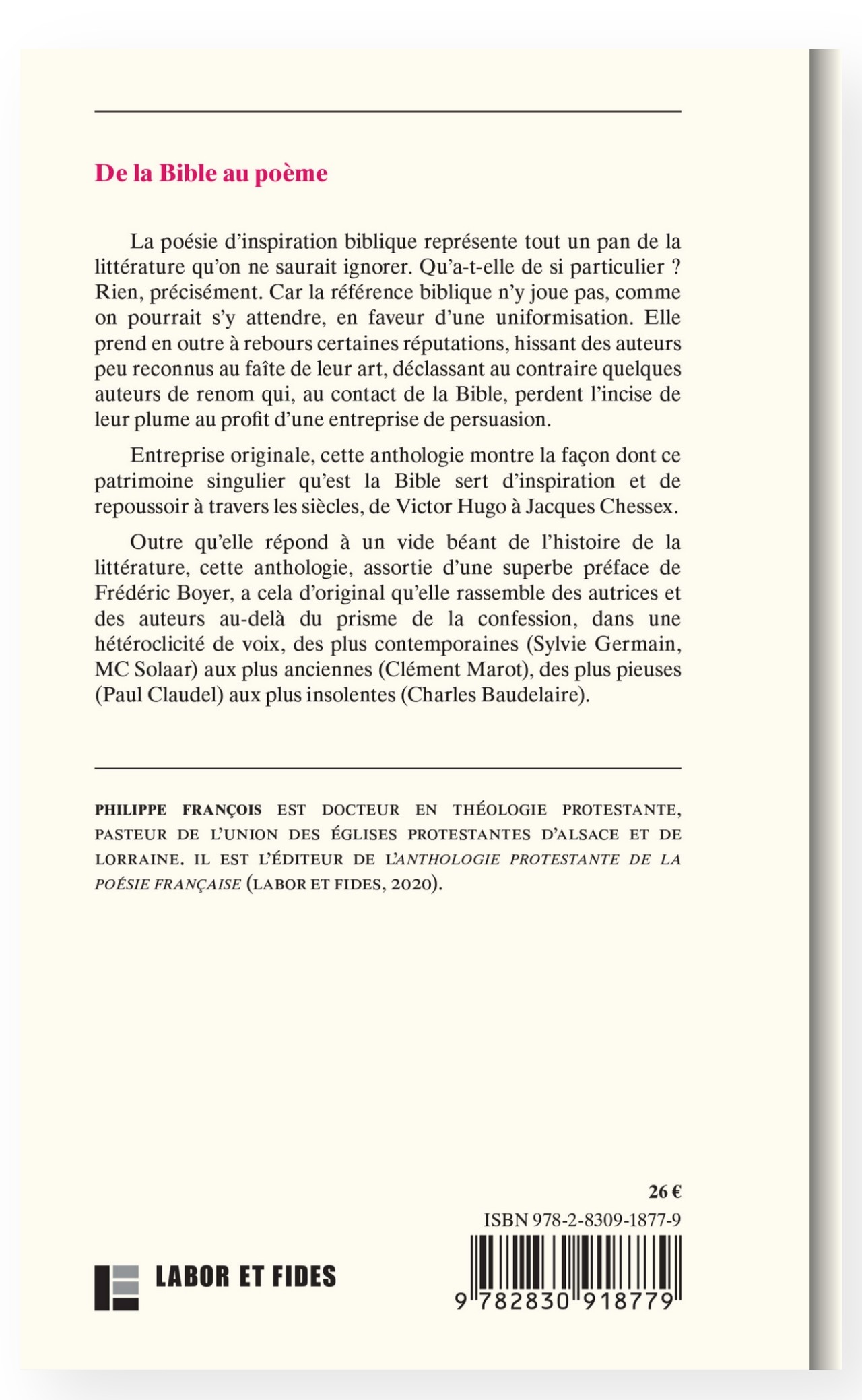 Parution le 12 novembre 2020 de l'Anthologie protestante de la poésie française, aux éditions Labor et Fides (Genève).
